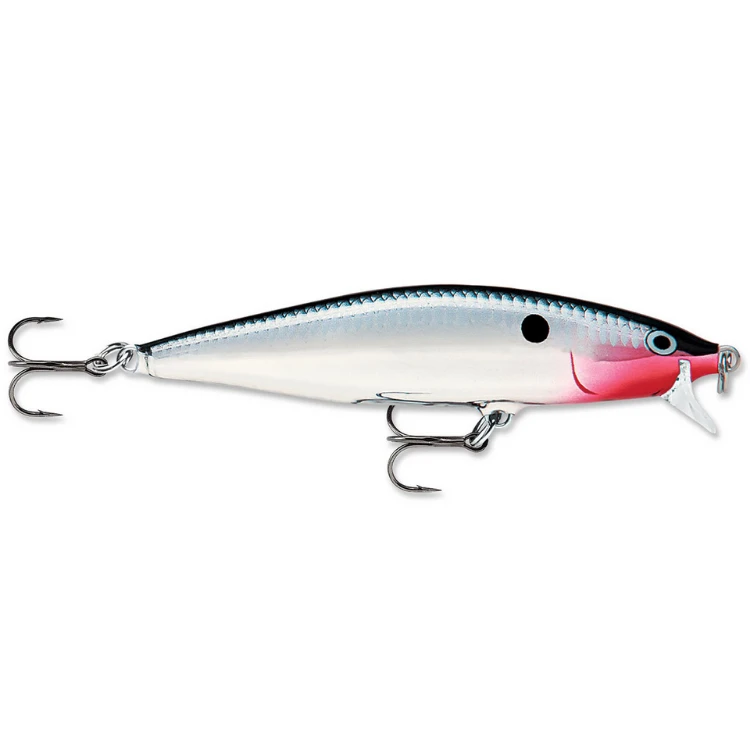 Created with the material of balsa and having a slow-rising response on retrieve pause, the Flat Rap swims with a hard-flashing modification of the classic Rapala wounded-minnow action. It’s triangle lip provides quicker action while deflecting off obstacles in its way.